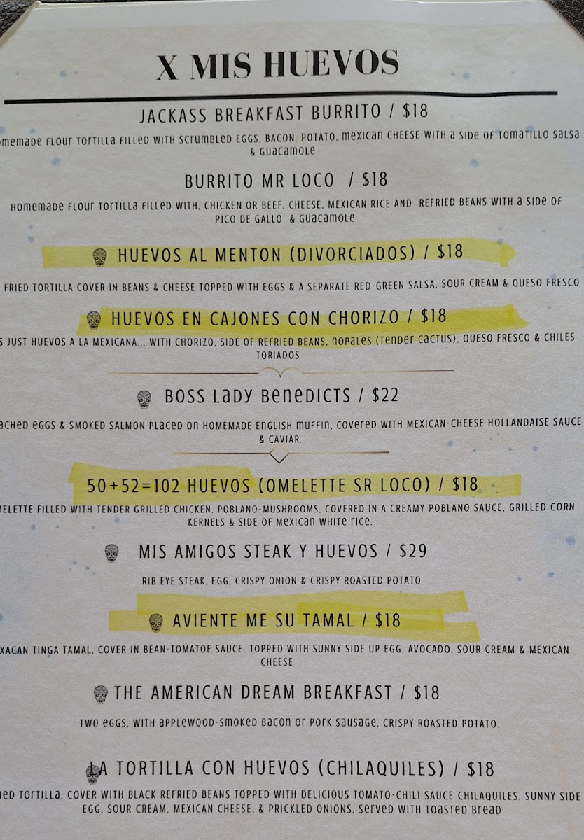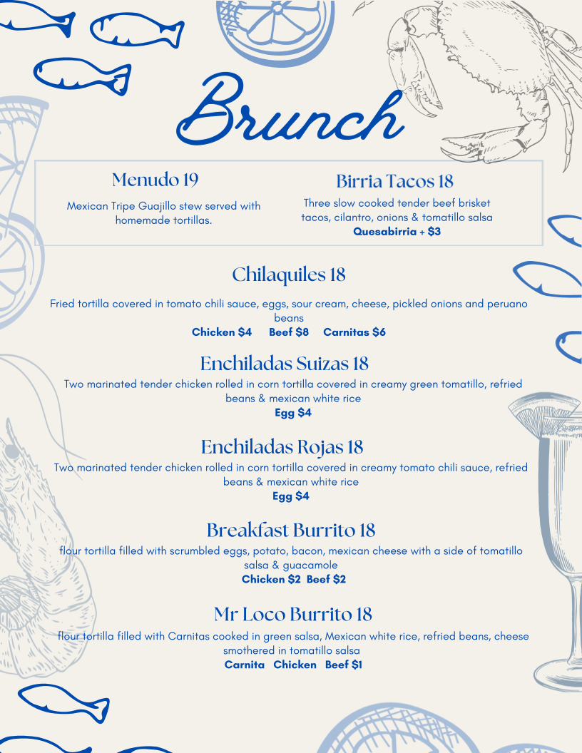 Mucho Loco Brunch Mexican Cantina Menu